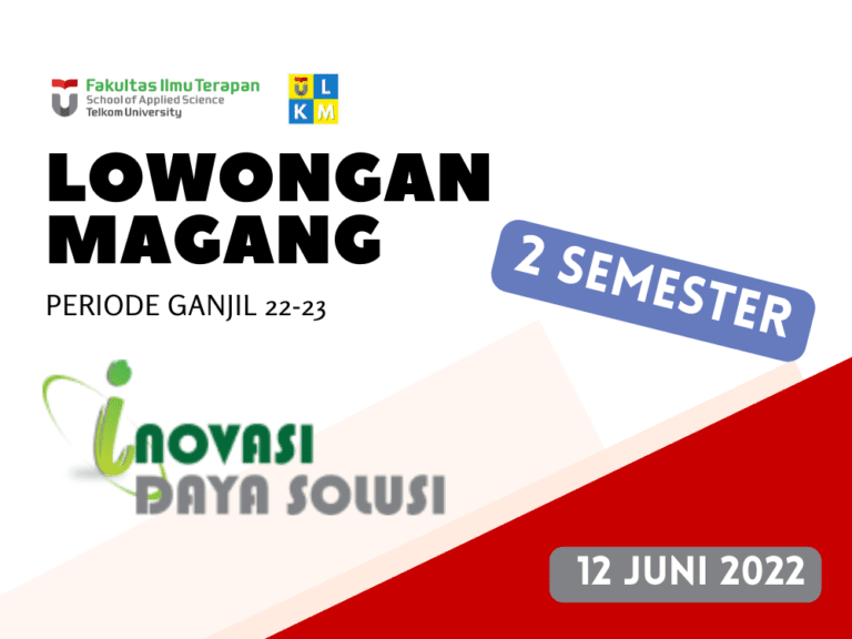 [vc_section][vc_row][vc_column width=”1/2″][vc_column_text]Magang Fakultas – PT. Inovasi Daya Solusi (IDS) Periode Semester Ganjil TA 2022-2023 Dear Student, Bagi kamu mahasiswa Fakultas Ilmu Terapan angkatan 2020, dan tertarik untuk mengikuti Program Magang 2 Semester ada peluang untuk dapat mengikuti program ini di…